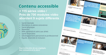 Ce contenu est exclusivement réservé aux entreprises qui ont mis en place des programmes d'aide aux employés pour leurs travailleurs. Les vidéos sont accessibles à tout moment pour les employés, offrant ainsi un accès pratique et facile à des ressources de qualité pour leur mieux-être.